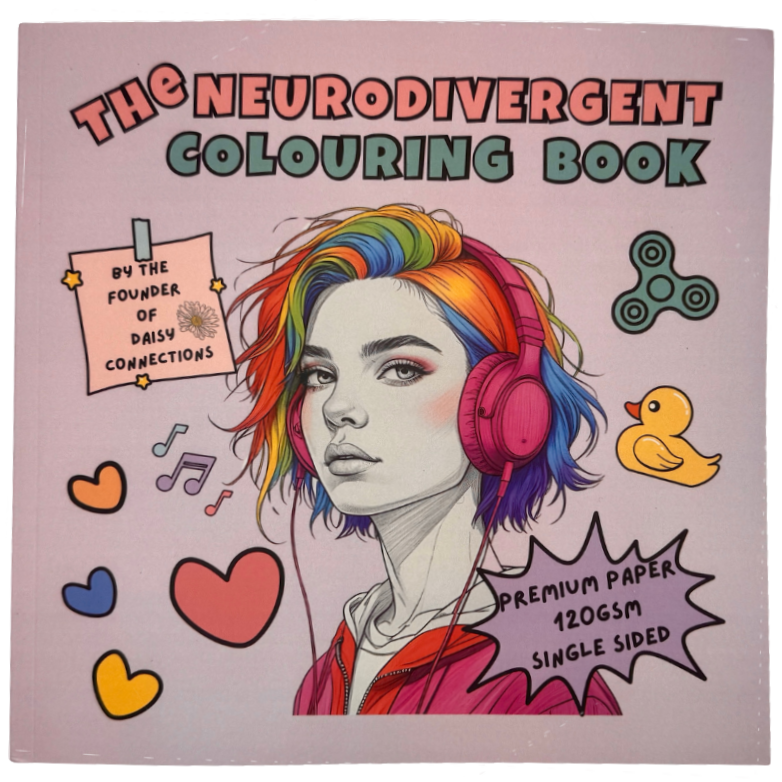 Created for neurodivergents by neurodivergents, this colouring book celebrates the reality of neurodivergent life with humour and honesty.